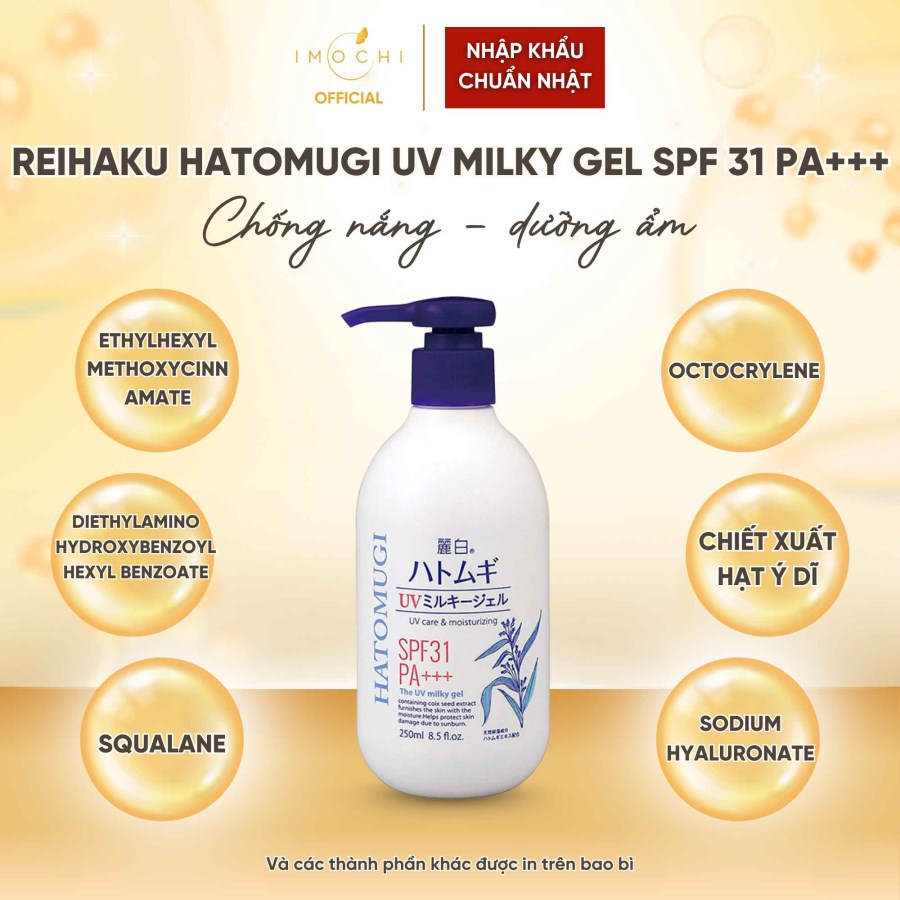 + Reihaku Hatomugi UV Milky Gel SPF 31 PA+++ (250ml): Chống nắng, dưỡng ẩm