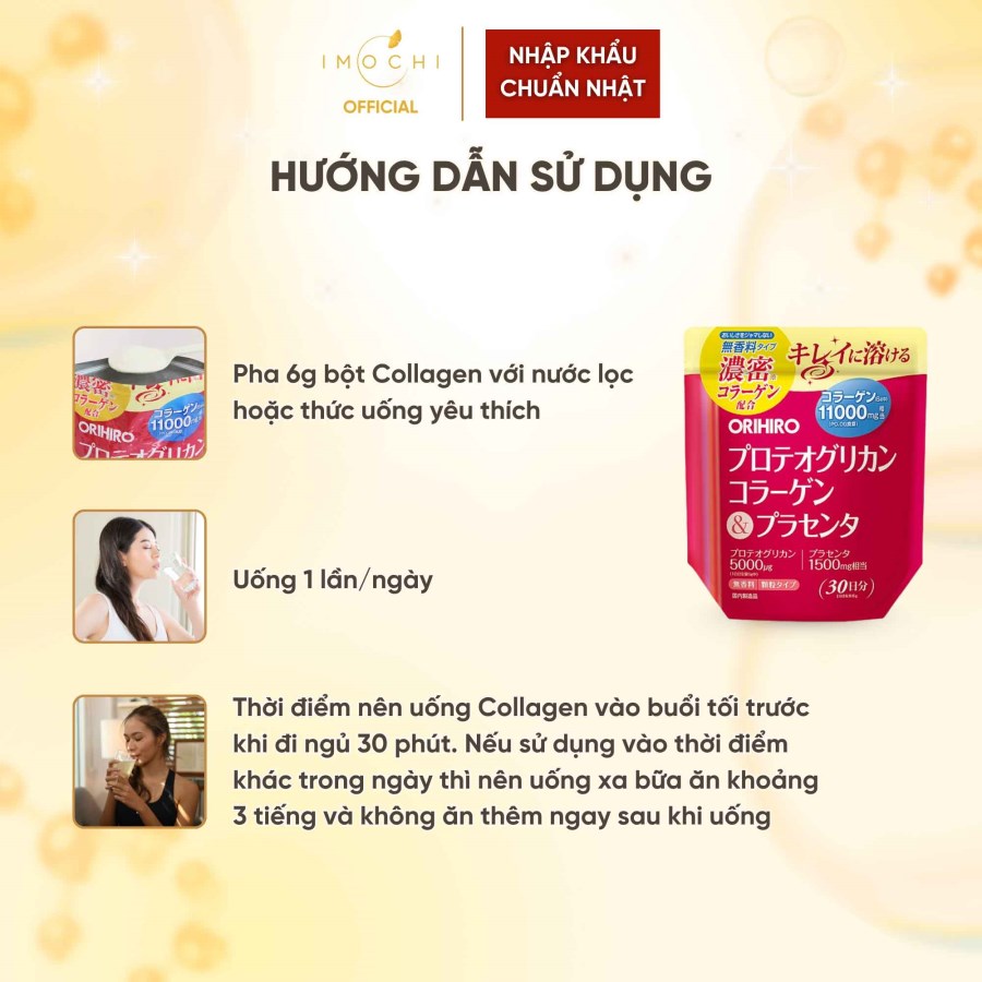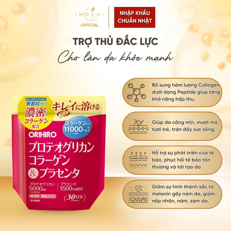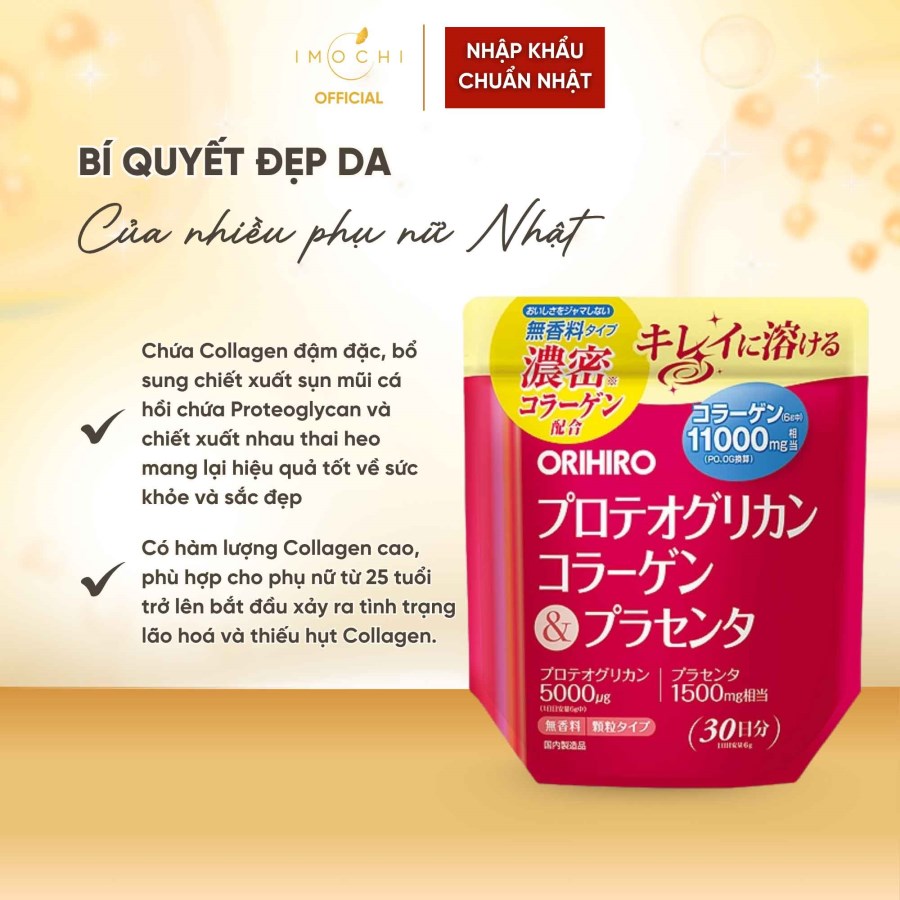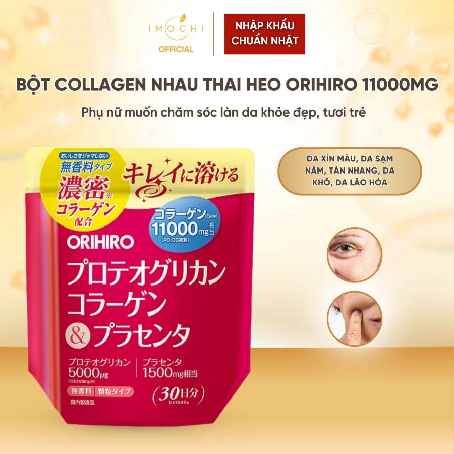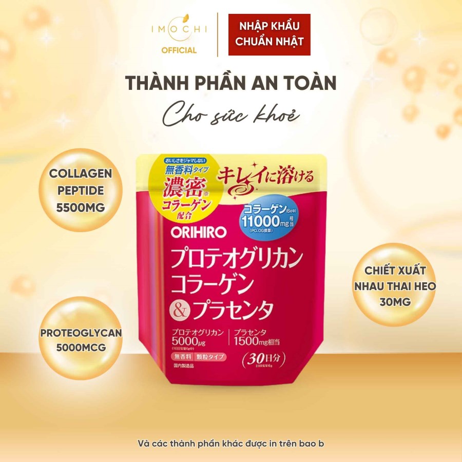 Trong Vòng 7 Ngày- Bột Collagen Proteoglycan nhau thai heo Orihiro 11000mg chứa thành phần Collagen đậm đặc, bổ sung chiết xuất sụn mũi cá hồi chứa Proteoglycan và chiết xuất nhau thai heo mang lại hiệu quả tốt về sức khỏe và sắc đẹp.