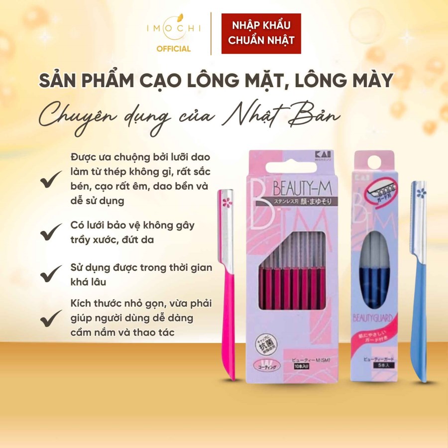 - Dao cạo lông mặt, lông mày Kai Beauty được ưa chuộng bởi lưỡi dao và tay cầm làm từ thép không gỉ, rất sắc bén, cạo rất êm, dao bền và dễ sử dụng.