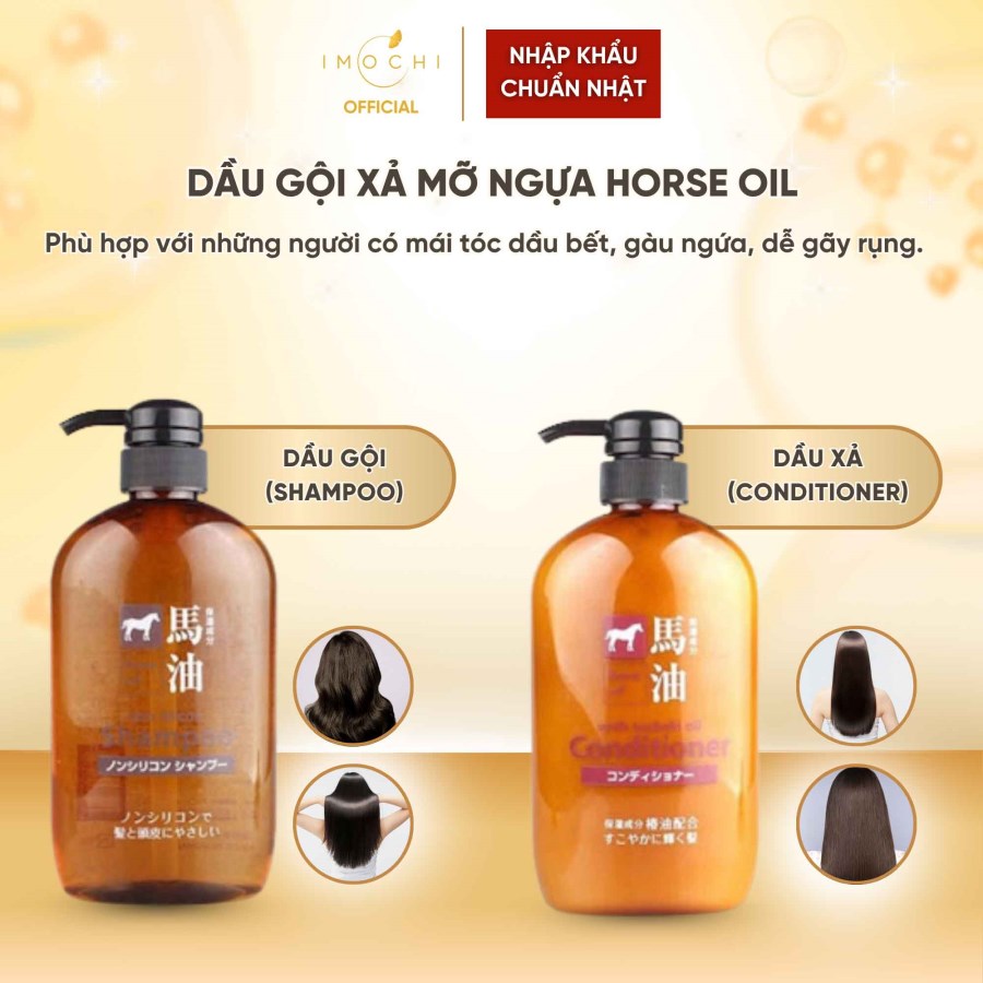 - Dầu gội xả mỡ ngữa Horse Oil giàu axit amin được sản xuất theo công nghệ của Nhật Bản, không chứa Silicon, không gây hại da đầu, giúp tóc và da đầu nhẹ nhàng, mềm mại và giữ được độ bóng tự nhiên.