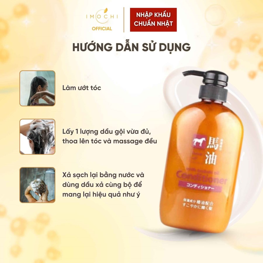 - Thành phần chiết xuất mỡ ngựa thẩm thấu sâu vào lõi tóc, phục hồi hư tổn, mang lại cảm giác suôn mượt tự nhiên sau khi gội.