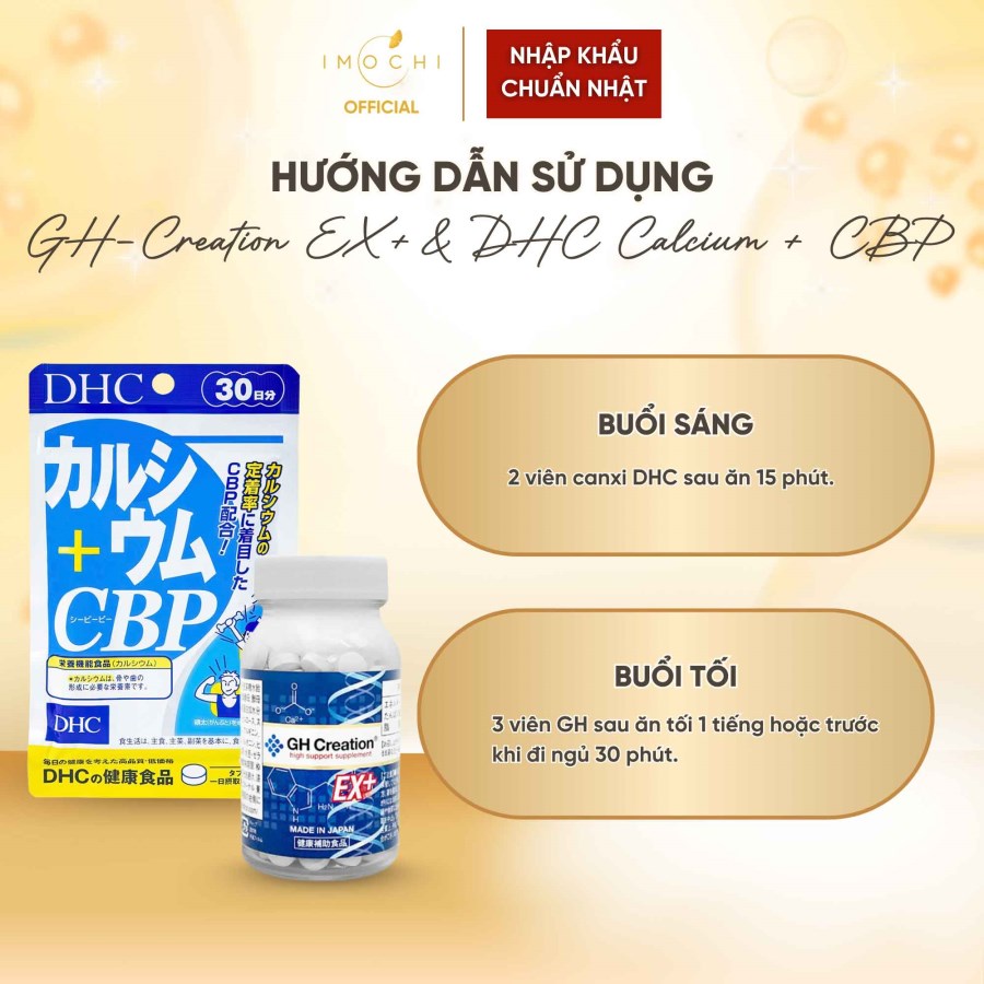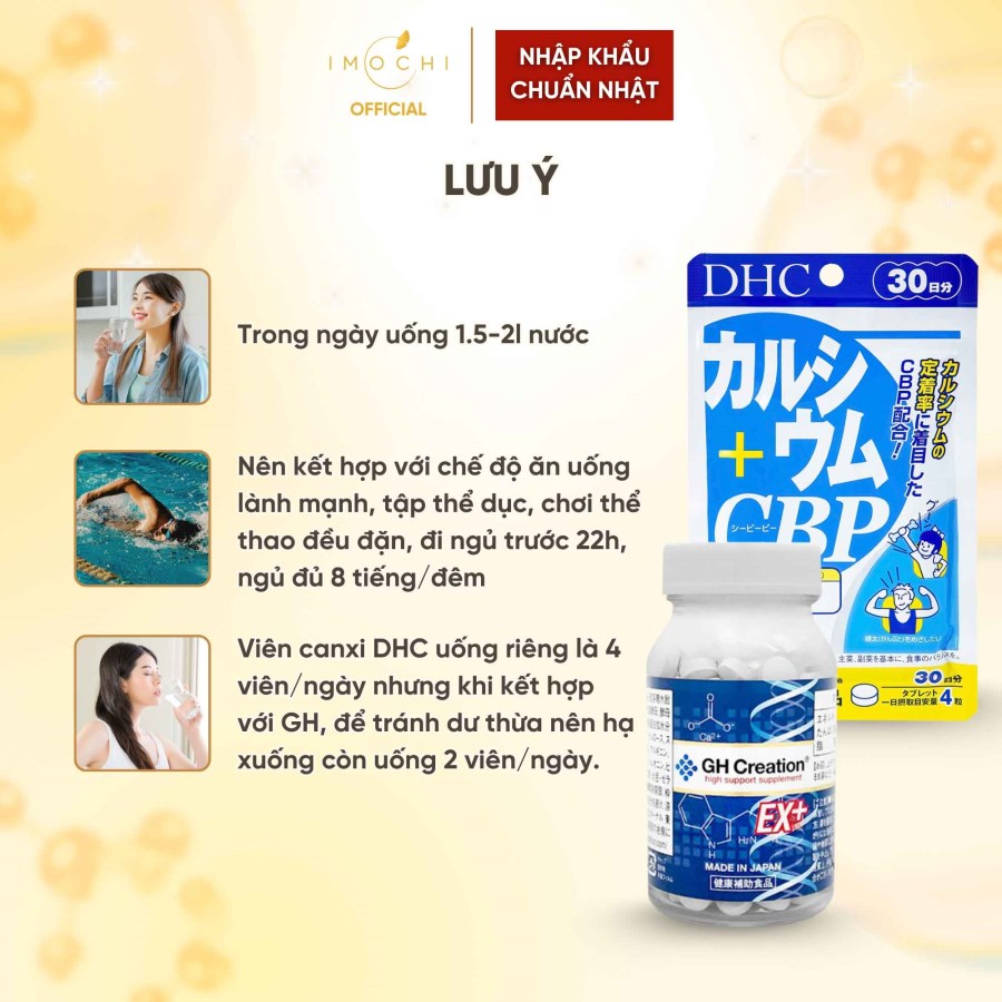 - Lưu ý: Viên canxi DHC uống riêng là 4 viên/ngày nhưng khi kết hợp với GH trong GH có canxi rồi, để tránh dư thừa nên hạ xuống còn uống 2 viên/ngày.