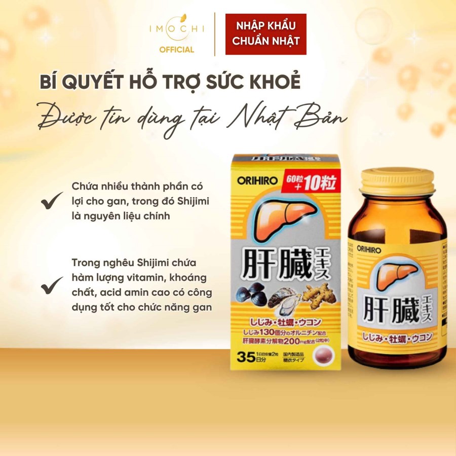 Trong Vòng 7 Ngày- Viên uống bổ gan Shijimi Orihiro chứa nhiều thành phần có lợi cho gan, trong đó Shijimi là nguyên liệu chính. Trong nghêu Shijimi chứa hàm lượng vitamin, khoáng chất, acid amin cao có công dụng tốt cho chức năng gan.