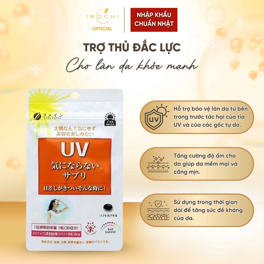 Trong Vòng 7 Ngày- Viên uống chống nắng Fine Japan là sản phẩm hỗ trợ bảo vệ làn da từ bên trong, đồng thời bổ sung lượng lớn chiết xuất Ceramide từ trái dứa, Vitamin C, Vitamin E… mang đặc tính chống oxy hoá rất tốt.