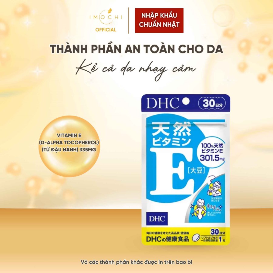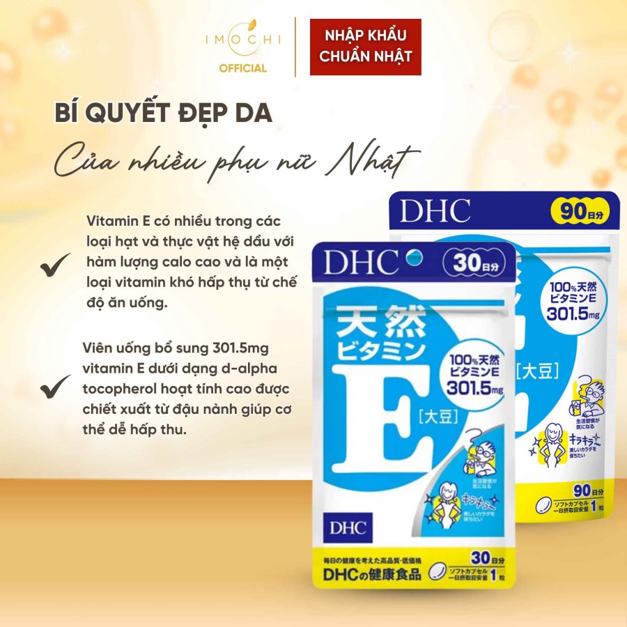 - Viên uống bổ sung vitamin E DHC chứa 301.5mg vitamin E dưới dạng d-alpha tocopherol hoạt tính cao được chiết xuất từ đậu nành.