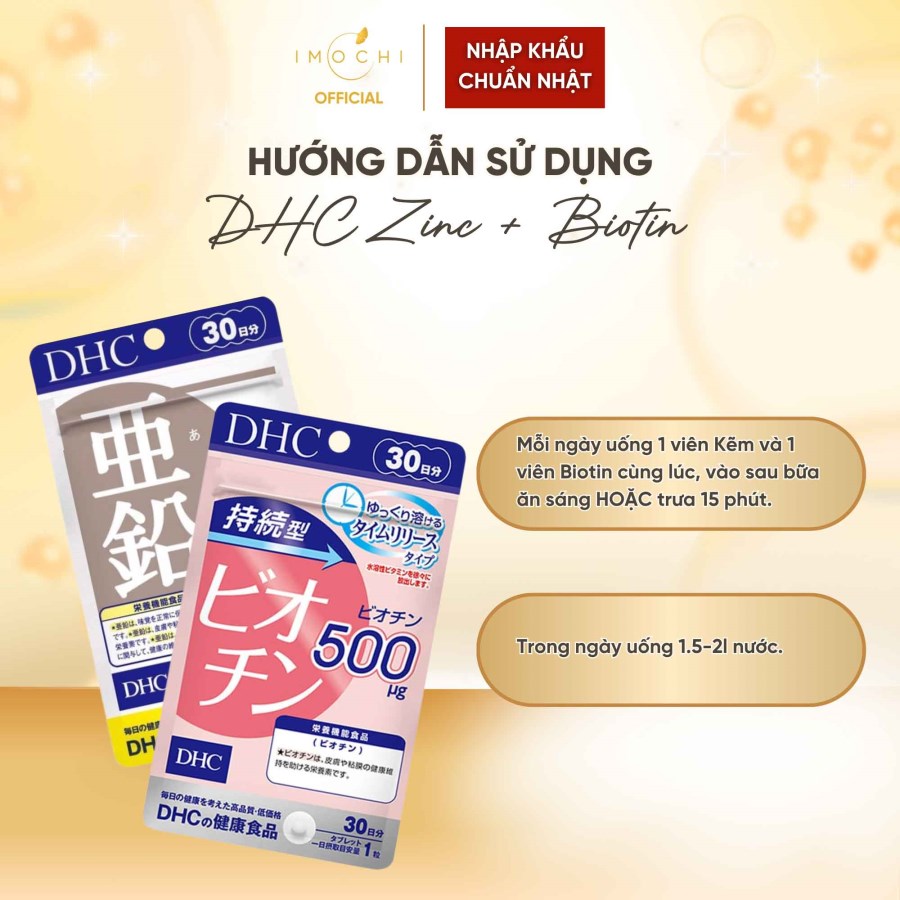 - Mỗi ngày uống 1 viên Kẽm và 1 viên Biotin cùng lúc, vào sau bữa ăn sáng HOẶC trưa 15 phút.